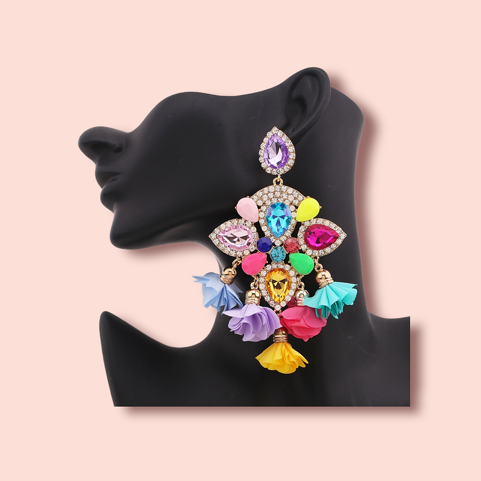 Kristall Ohrringe mit "Rani" mit Quasten Rosa